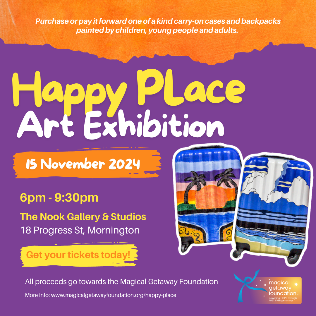 Join us for an evening of art, music and community while supporting a great cause. All proceeds will go to the Magical Getaway Foundation, helping provide first-ever holidays for families living in the Mornington Peninsula Shire.